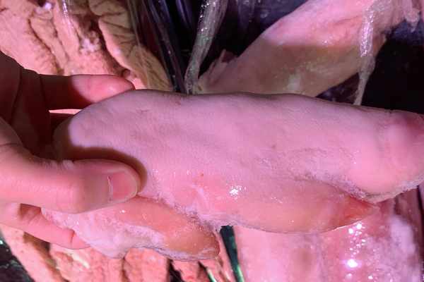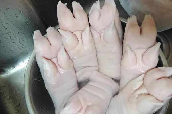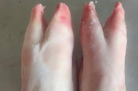 正常豬蹄去毛後應該是淡黃色的,如果大傢看到特別白白凈凈的豬蹄,那一定要提高警惕瞭,有可能是被藥水浸泡過的。用藥水浸泡過的豬蹄不僅顏色白凈,體積也會漲大不少,就會導致蹄瓣是分開的狀態,遇到這樣的豬蹄就不要選購瞭。