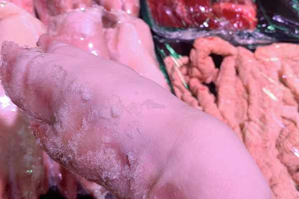 市場上的不良商傢在清理豬蹄的時候,會食用火堿、雙氧水等浸泡豬蹄,除瞭豬蹄以外,雞爪、豬肚等,如果顏色氣味都不太正常,而且個頭偏大,手感黏膩,都有可能是被藥水浸泡過的,買的時候一定要當心!小寧還要提醒大傢,買豬蹄並不是越大越好,最好挑選八兩到一斤二兩的豬蹄,這樣的豬蹄不僅口感好,肉質也是最佳的!
