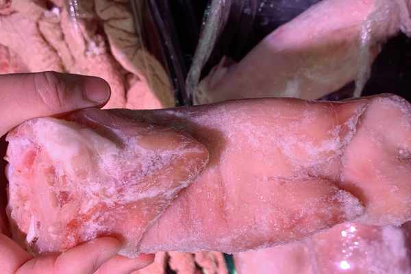 正常的豬蹄湊近聞,是豬肉本身的腥味;如果被藥水浸泡過的豬蹄,就會聞到一股淡淡的藥水味,所以,如果味道不對,那價格多便宜都不要購買。