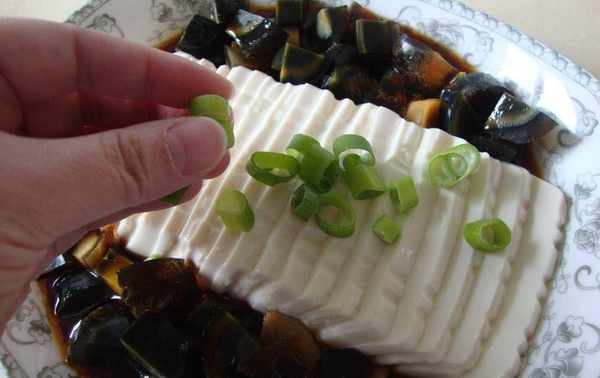 1、去菜市場或者超市選購內酯豆腐,這種的質地比較細美,比手工的豆腐要好處理,甚至不用加熱就能吃瞭。而皮蛋又叫松花蛋、灰包蛋或荷包蛋等,有些傢庭有自己做的習慣,當然出去買也是很方便的。皮蛋的表面黝黑光亮,還密佈著白色的花紋,看起來就像一朵朵花,吃起來別有一番風味。