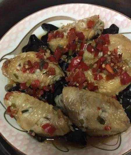 材料:雞翅8隻油適量、剁椒2湯匙、蒜2瓣、薑1小塊、香菜末少許、烤肉醬半匙
