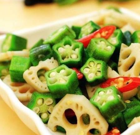 材料:蓮藕2根(九孔)、秋葵2根、胡蘿卜半根、葵花子油、鹽巴、生抽、雞精各適量。