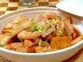 材料:蝦肉60克,鮑片40克,鮮魷80克,茭白200克,油炸豆腐100克,冬筍片50克,烹調油適量,清水適量,大蒜30克,薑片6克,蠔油20克,醬油10克,紹酒15克,雞粉2克,白糖10克,胡椒粉少許