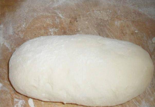 第三步:把發酵好的面團倒在案板上,倒空,揉成有彈性的面團,稍微揉一下,最後把面團揉成長條。