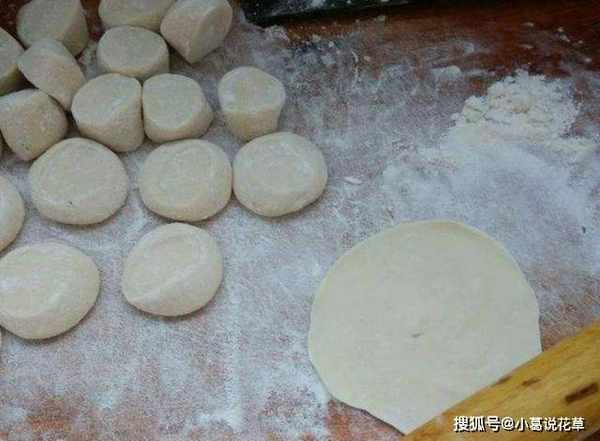 第七步:切成小塊,搟成圓皮,在皮中央放適量餡料,揉勻,搟成餃子。
