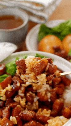 連著湯汁一塊澆到米飯上,搭配點生菜,隨手拌一拌,全傢都是濃香。