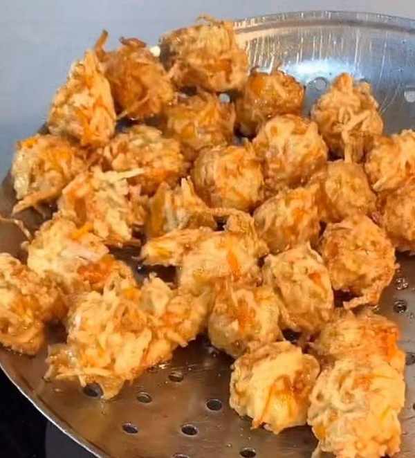 拌勻後用手輕輕的團成小丸子形狀,之後就起鍋燒油。炸這小丸子油溫一定不要高瞭,三四成油溫就行,丸子放到油裡冒泡就可以。全程開中火慢慢炸就可以瞭,炸成金黃色就可以撈出控油裝盤瞭。這樣一道美食就制作完成瞭,油炸蘿卜丸子。你喜歡嗎?