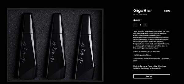 原標題:特斯拉推出啤酒GigaBier,每三瓶售價89歐元