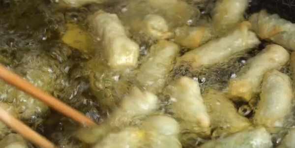 11.然後浮起來之後用工具不停地翻動它,讓它受熱均勻。