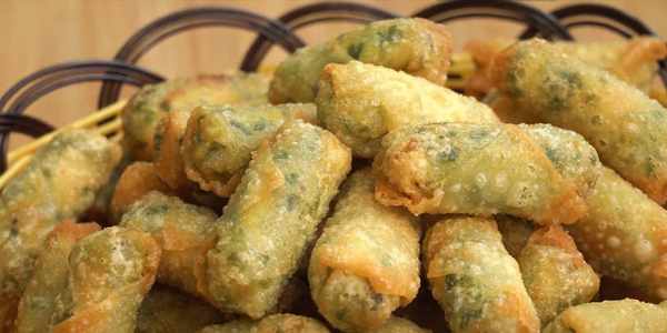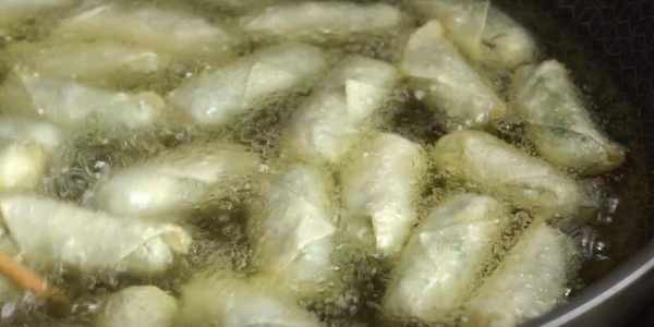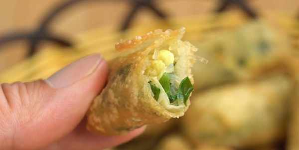 這道美食外觀是小巧玲瓏的,顏色金黃,表面很摸起來很硬,吃到嘴裡是酥脆的,裡面是素餡,很鮮美。主要材料是韭菜。韭菜是這個季節的食物,現在吃最肥美,營養價值也高。除瞭韭菜還有雞蛋、蝦皮、粉絲。粉絲可以換成粉條。這些都是老搭檔瞭,組合起來味道鮮美,口感層次也豐富。