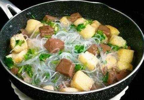 3.超市買的白玉鴨血,一塊300g,切成1.5厘米左右的方塊,超市買的白玉鴨血,一塊300g,切成1.5厘米左右的方塊,;直接加入粉絲(粉絲無需提前泡軟);