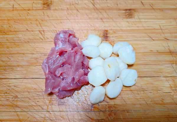 食材:馬蹄、瘦肉、淀粉、雞蛋、蔥、薑、生抽、淀粉、食用油、枸杞