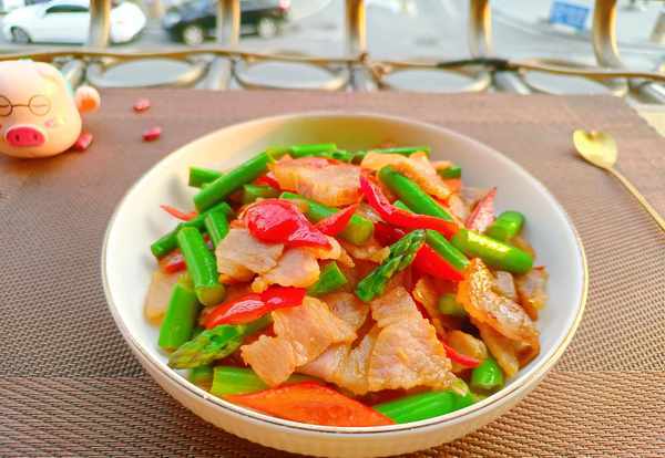 食材:蘆筍200克、辣椒1個、臘肉100克、蔥、薑、料酒、鹽、生抽、食用油