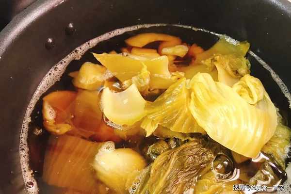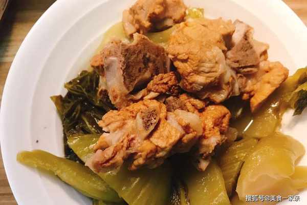 這就是潮汕傢常下飯菜酸菜燉排骨,無需太多調料,讓食物本身的味道互相交融和影響,吃起來更加新鮮美味。