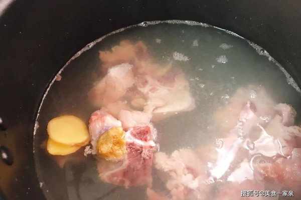 1.首先將買回來的新鮮排骨斬好,可以讓賣傢幫你剁好,清洗幹凈,然後冷水下鍋,加薑片和料酒進行焯水,焯水後撈出沖冷水備用。
