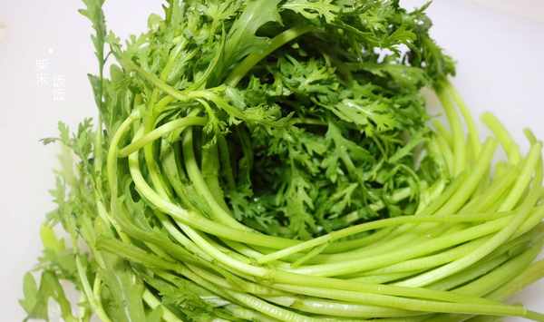 1,先把茼蒿摘洗幹凈。摘茼蒿要一根根仔細查看,以免有雜草混在裡面。然後用流動的清水多淘洗幾遍,再瀝幹水分。