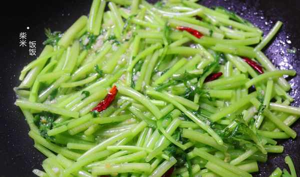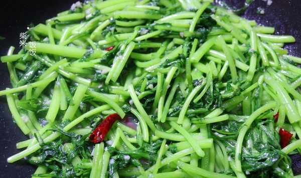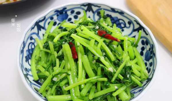 清炒茼蒿【食材】茼蒿、大蒜、幹辣椒、鹽