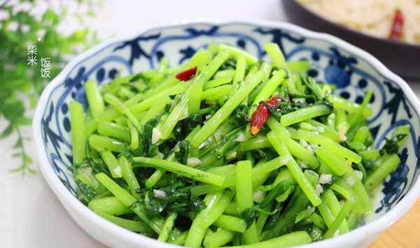 3,春季的茼蒿特別鮮嫩,全程需要旺火快炒。保證其菜色更好,營養流失少,味道也會更好。