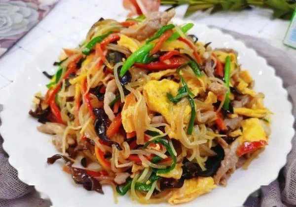 豬裡脊肉200克、胡蘿卜半根、尖辣椒一根、黑木耳適量、蔥絲適量、宴友食用油、料酒1大匙、甜面醬1大匙、鹽1/2小匙、清水3大匙、生抽1大匙、花椒粉1小匙、雞精1/2小匙