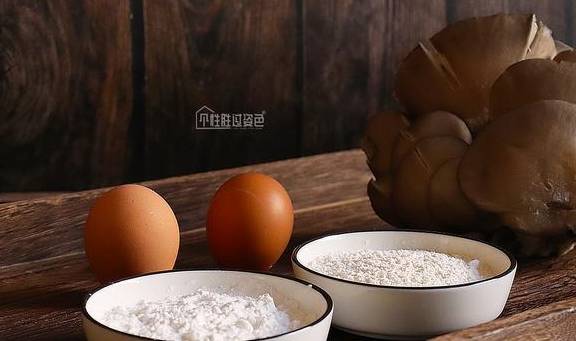 平菇250克、雞蛋2個、面粉60克、淀粉40克、鹽5克、胡椒粉3克