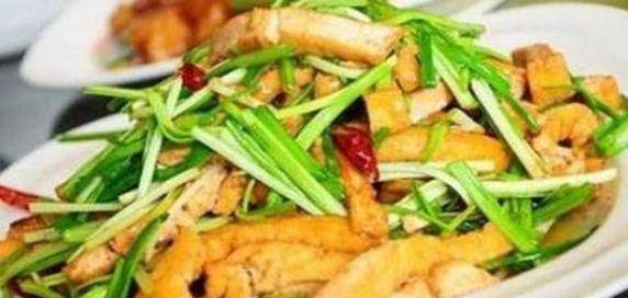 3、加鹽、醬油翻炒均勻,加蒜苗葉子,加雞精翻炒均勻即可食用。
