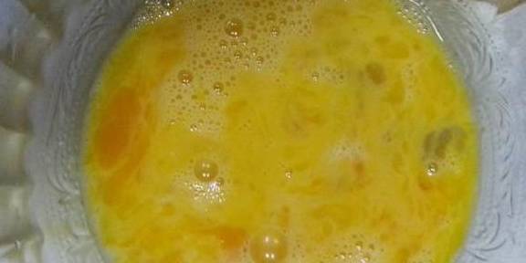 第一步我們先準備一個幹凈碗,先把將雞蛋打入碗中,加入適量鹽、白胡椒粉、料酒,順時針攪拌成蛋液相信大傢這個都會。