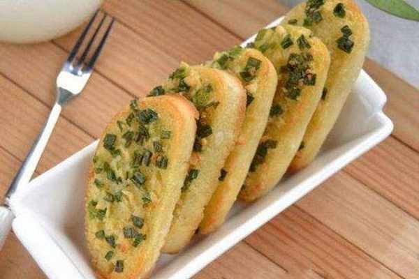 4.將饅頭切成三片,抹上調好的蒜泥醬。