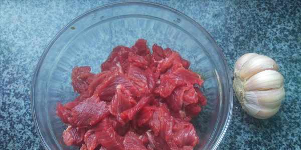 第三部:把牛肉洗幹凈,然後橫切薄片,切好放碗裡。