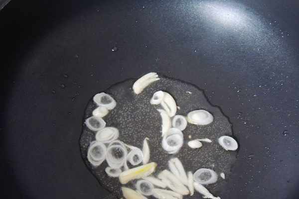 6.鍋燒熱,放入適量食用油,油微熱的時候,將蔥花放入鍋中,中小火煸炒出香味。