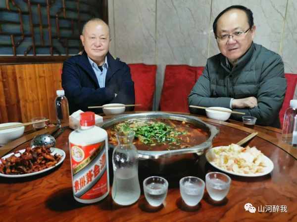 2023年3月27日,韓可風老師(左)與李尋老師(右)相會於貴州遵義蝦子古鎮,在茍朝均羊肉粉店品酒小敘,以羊肉火鍋下酒
