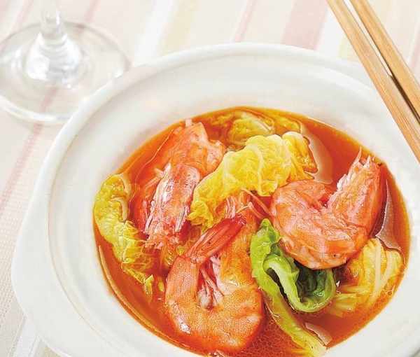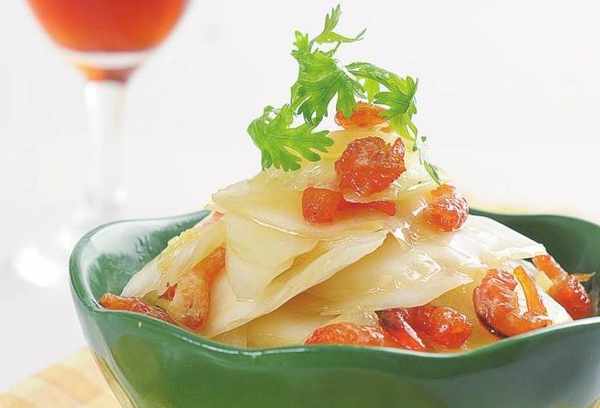 準備材料:大蝦300克,白菜250克,色拉油、鹽、蔥薑絲、香油各適量