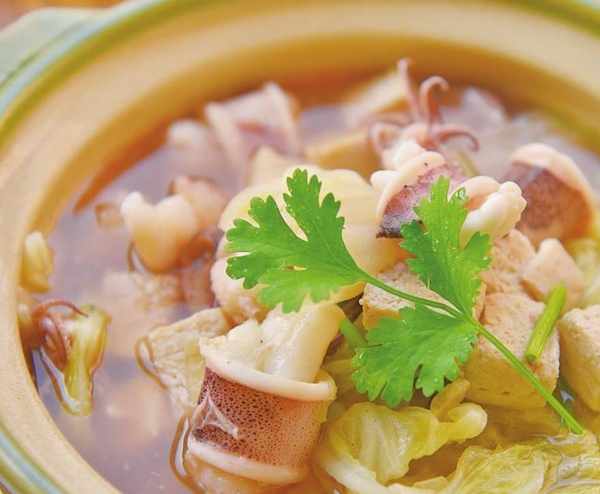 8蓋鍋蓋,煮約10分鐘,將白菜快煮透時放入筆管魚,煮約3分鐘至筆管魚變色。