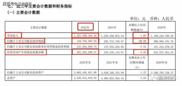 3月29日,會稽山發佈2022年年度報告。 據年報 顯示,公司主營收入12.27億元,同比下降1.85%; 歸母凈利潤1.45億元,同比下降48.98%; 扣非凈利潤1.28億元,同比下降7.53%。 對於業績的變動,會稽山在公告中表示,營收的減少,主要是受市場宏觀環境影響銷售等因素所致; 凈利潤的下滑,主要是因為公司2021年資產處置收益含華舍廠區及嘉善廠區房屋拆遷剩餘補償款,但2022年公司無此收益項目等影響所致。 並表示,公司2023年將加快高端佈局,推動品牌營銷和市場拓展的戰略升級,力爭2023年酒類銷售同比增長15-20%。