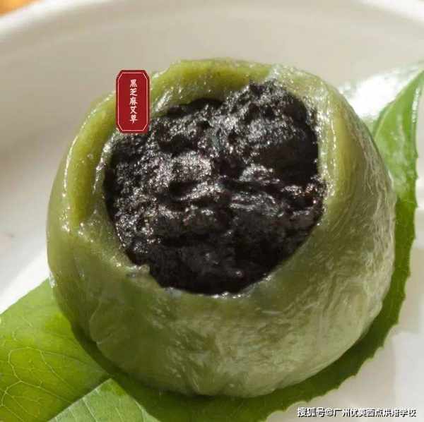 青團外皮包裹芝麻內餡,口感香甜軟糯,一口咬下是流心的感覺,連吃好幾個都不膩!