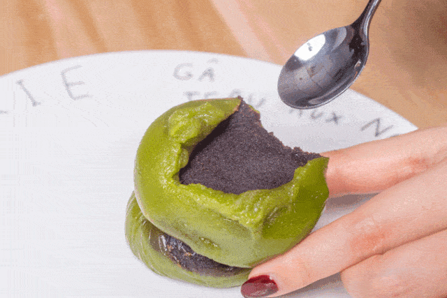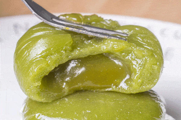 從外綠到內的抹茶團,隨手一戳都覺得彈性十足。外皮柔韌度甚至隻需3s就能恢復原貌!清新誘人~