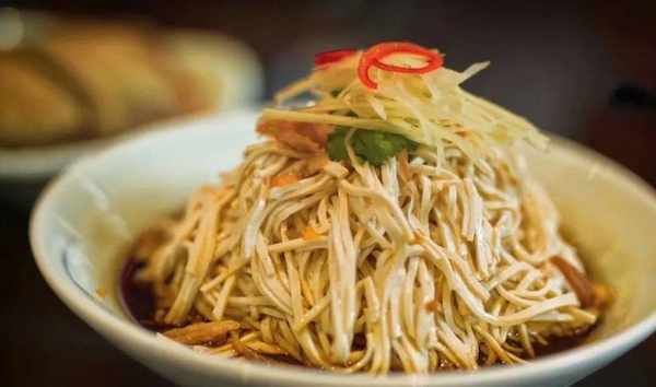 在揚州,吃早茶是一種非常傳統、非常平民式的消遣。隨便一傢路邊小茶館,來一壺綠茶,叫一碟燙幹絲,就是揚州早茶的標配。茶葉是帶梗的,味道粗獷;燙幹絲一定是用揚州大白豆腐幹切的,粗細均勻。吃燙幹絲要一筷子夾起一大簇,連同薑絲開洋一起入口,層層疊疊的綿密湧上舌尖。再來一口茶水,幹絲的致密和薑絲的微辣,很好地中和瞭綠茶中的生澀;而茶水的回甘,也越發凸顯出幹絲的耐嚼和餘味悠長……