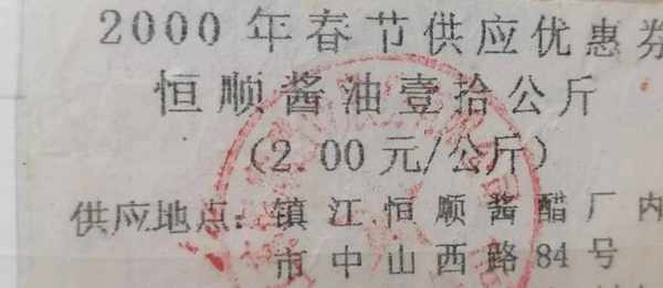 那時候,恒順老廠還位於中山西路,為瞭照顧本廠職工和客戶單位,廠裡每年在春節來臨之前,準備一批質優價廉的特供醬油,特價供應。能得到這個供應券的,都是恒順的老鐵瞭。