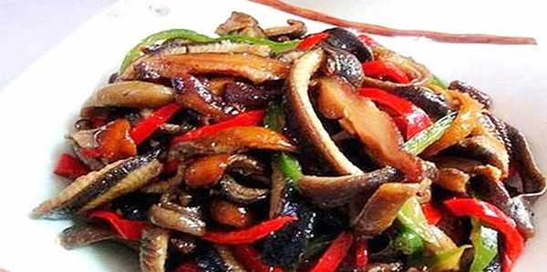 第一步:首先將鮮活鱔魚宰殺去內臟、切成長的絲、放入沸水鍋內、加入料酒、燙至斷生後撈出、瀝幹水分待用。