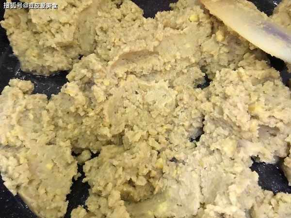 3、取不粘鍋,下入適量油,放入板栗泥和蜂蜜,開中小火,開始炒制。炒至板栗泥不粘鏟,幹濕適中,就好瞭。