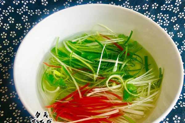 2、大蔥洗凈,把一部分大蔥切段,一部分蔥白和蔥葉切成細蔥絲,薑去皮切片和部分薑絲備用,青紅椒洗凈去根去籽,切成細絲和蔥薑絲放入清水裡浸泡五分鐘左右。