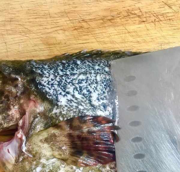 魚腹腔貼近脊骨的部分,通常會粘有一層血膜狀的物體,扣開後是血液的凝固體,稱為貼骨血,在魚的頸椎骨往下直至魚腹部的位置,去除幹凈即可。