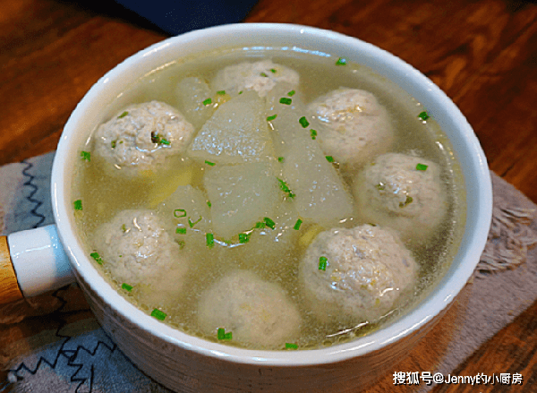 肉丸都浮起來後,放入冬瓜,保持小火煮兩分鐘。時間到後轉中火,煮到肉丸和冬瓜熟透。