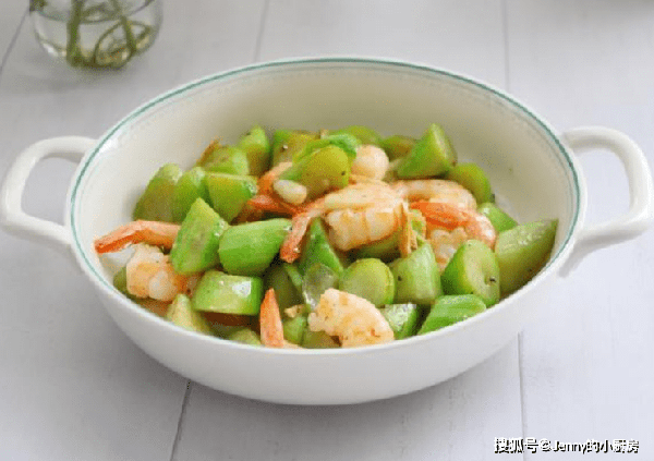 鍋內加油,燒熱後放入蝦仁翻炒,炒到變色時盛出。接著倒入薑蒜爆香,再倒入絲瓜翻炒,炒到微軟。
