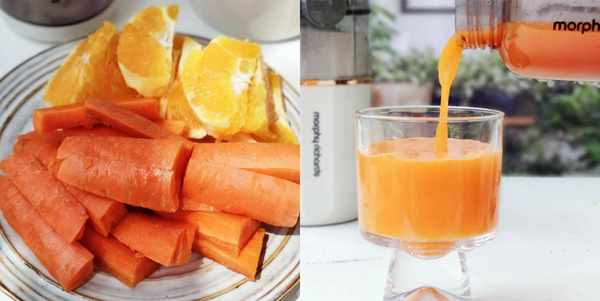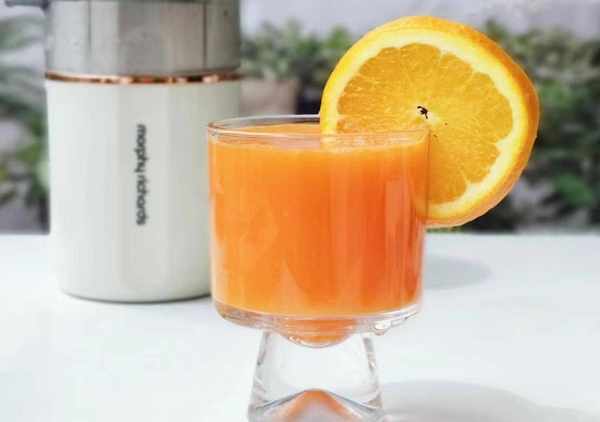 2、這道橙子胡蘿卜汁,有一個橙子香味,喝起來清爽香甜,沒有添加劑,純天然果蔬汁,營養又美味。