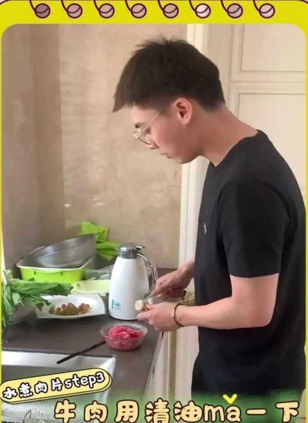 步驟三:牛肉總食用油醃制一下,鎖住牛肉片裡頭的水分。看著李易峰做水煮肉片如此熟練,小編暗暗發誓以後找老公就先這樣的。