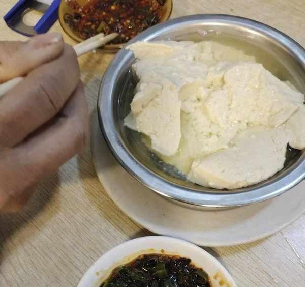 福建這邊吃豆花都是吃甜豆花,雖然也很好吃,但是趙曼還是特別想念傢鄉的那一碗豆花飯。豆花鮮嫩,配上香辣的蘸水,清爽之餘又開胃下飯,想著就流口水。在老傢的時候,她經常中午一碗豆花飯就解決瞭,人多的話,點個燒白配個紅燒肥腸味道更好。