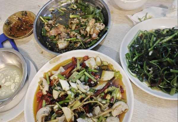 趙曼跟著老公兒子來到這裡,點瞭一碗豆花飯,聞著煙火氣息很熟悉,又熟練地點瞭一個鹵豬耳朵一個火爆肥腸,再來一個清炒的蔬菜解膩,一共花瞭78元。她說看到那一鍋豆花就知道穩瞭,恨不得把豆花水都喝上幾口。香滑的豆花配上蘸碟簡直絕瞭,趙曼把豆花夾到碗裡,再淋點辣椒上去,配著米飯直接吃瞭一碗,感覺太過癮。