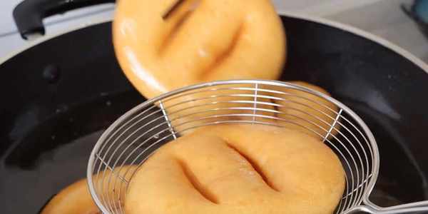 12.慢慢浮起定型之後給它反復翻面,讓它受熱均勻。