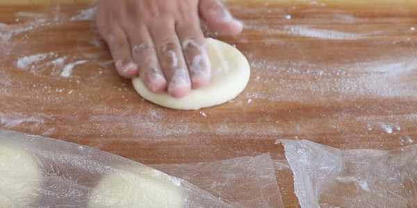 這道油餅的特點就是吃著軟,剛出鍋時表面很酥脆,放一會之後就變得很筋道,放半個月都不會發硬,這不是誇張。想要油餅柔軟不發硬,和面是關鍵。這次采用的是半燙面的做法,水量大一點。按照這個做法做出來的油餅就會非常好吃。口味是原味的,有一點點咸味,吃著很香,越嚼越香。