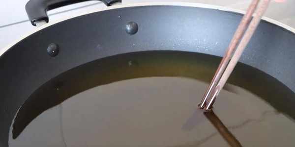 10.起鍋燒油,油燒到鍋裡冒泡的程度。轉小火。